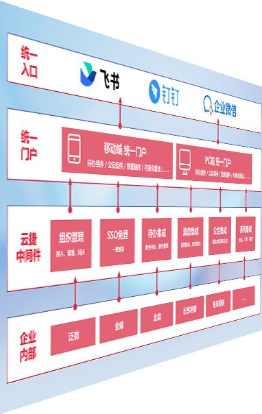 对协作平台提供支持服务,,支持企业应用与协作平台对接,,包含组织同步、、消息集成、、、待办集成等。。。。支持目前主流的协作平台:钉钉、、企微和飞书。。。。